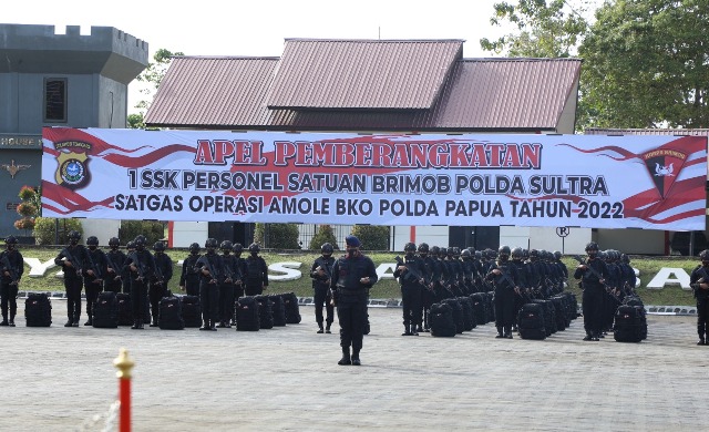 KENDARI, TRIASPOLITIKA.ID – 102 anggota Brimob Polda Sultra dikirim ke Papua untuk menjaga keamanan dan ketertiban khususnya di wilayah Obyek Vital Nasional PT. Freeport.