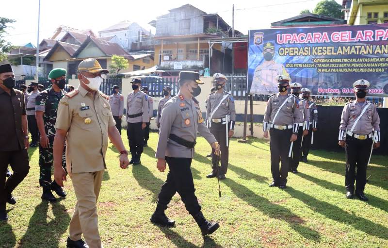 BAUBAU, TRIASPOLITIKA.ID – Polres Baubau, Sulawesi Tenggara (Sultra), menggelar upacara operasi keselamatan Anoa 2022, Selasa (1/03/2022).