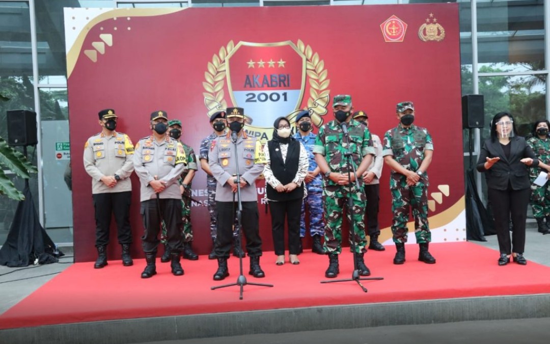 BOGOR, TRIASPOLITIKA.ID – Kapolri Jenderal Listyo Sigit Prabowo menghadiri acara puncak 20 tahun bakti untuk negeri alumni Akabri 2001 atau Dwipa Arya yang menggelar kegiatan vaksinasi massal, pemberian bantuan sosial, pembangunan dan renovasi 11 tempat ibadah di Sentul International Convention Center (SICC), Kabupaten Bogor, Jawa Barat, Selasa (28/12/2021).