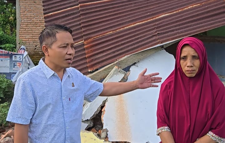 Suprianto melakukan kunjungan ke rumah warga yang terdampak gempa untuk melihat kondisi sekaligus memberikan dukungan moral kepada korban.