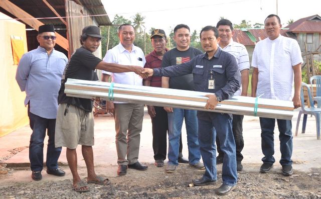 “Bantuan yang diberikan tersebut terdiri dari papan 3,5 kubik, balok kayu 2 kubik, seng 85 lembar, seng plat untuk bumbungan serta paku 10 kilo gram,” jelas Anggoro.