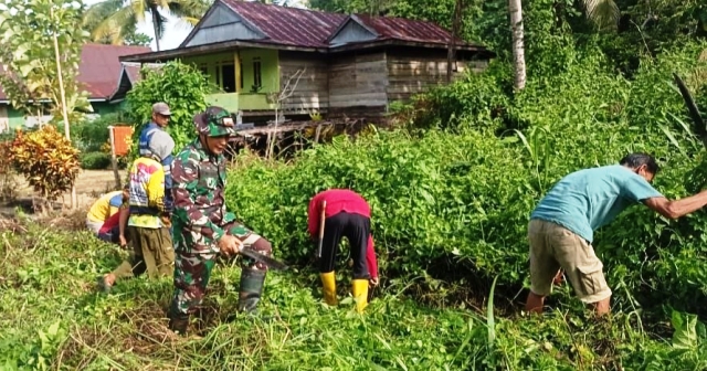 Babinsa Koramil Pakue Bersama Warga Bersihkan Drainase di Desa Tanggaruru