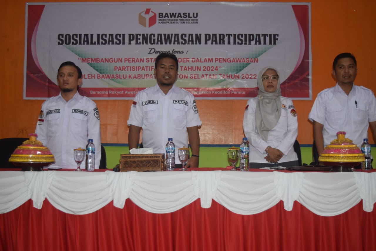 BUSEL, TRIASPOLITIKA.ID – Bawaslu kabupaten Buton Selatan (Busel), Sulawesi Tenggara menggelar sosialisasi pengawasan partisipatif pada Rabu, (14/09/2022).