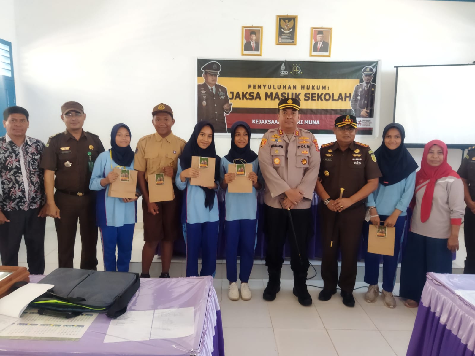 MUNA, TRIASPOLITIKA.ID – Kejaksaan Negeri Kabupaten Muna menggelar penyuluhan hukum terkait bahaya narkoba bagi generasi muda, di SMPN 1 Raha, Kelurahan Mangga Kuning Kecamatan Katobu, Muna, pada Jumat, (23/9/2022).