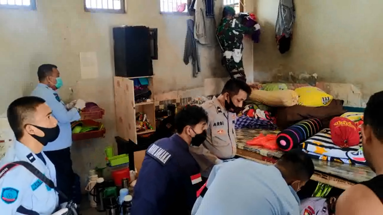 KOLAKA, TP – Rumah Tahanan (Rutan) Kelas IIB Kolaka, Sulawesi Tenggara (Sultra) kembali melakukan penggeledahan pada kamar warga binaan, Kamis, (8/4/2021). Kali ini Rutan Kolaka melakukan Razia kamar warga Binaan melibatkan Badan Narkotika Nasional (BNN) Kabupaten Kolaka, Polres Kolaka, serta sejumlah personel dari Kodim 1412 Kolaka.