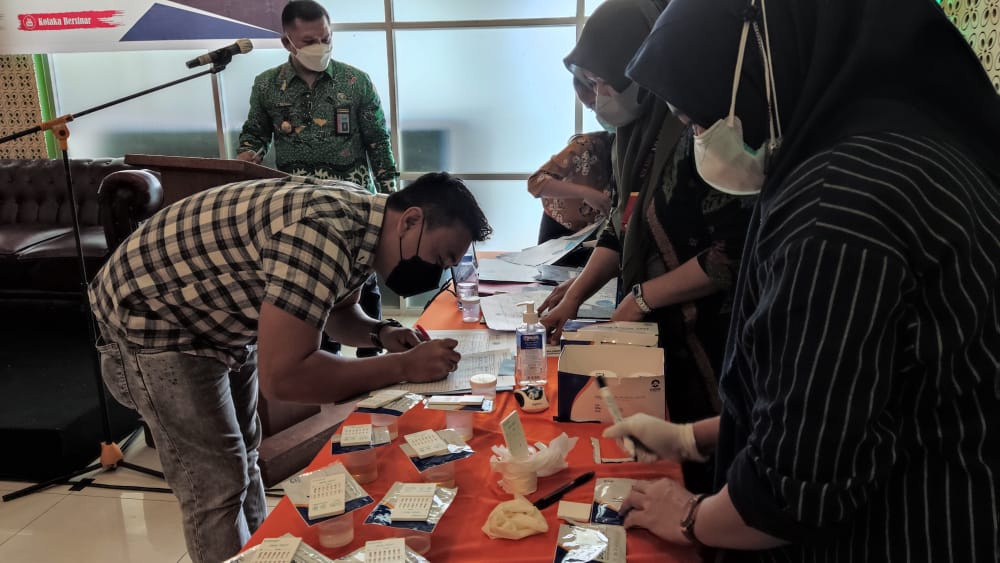 BNNK Kolaka melakukan tes urine terhadap peserta bimtek.