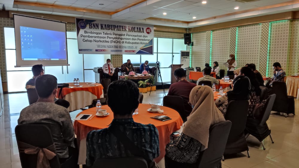 KOLAKA, TP – Badan Narkotika Nasional (BNN) Kabupaten Kolaka, Sulawesi Tenggara, menggelar Bimbingan teknis (Bimtek) program pemberdayaan masyarakat anti narkoba pada instansi pemerintah, disalah satu hotel di Kolaka, pada Jumat, (20/8/2021).