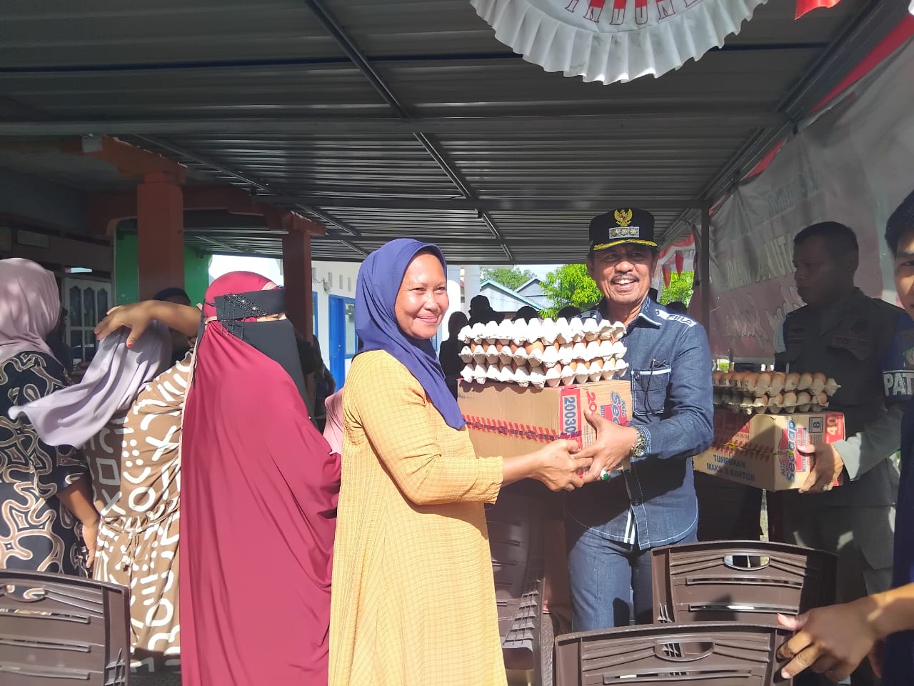 Setiap warga penerima bantuan mendapatkan dua rak telur dan satu dus mie instan. Adapun jumlah penerima bantuan di masing-masing desa meliputi: