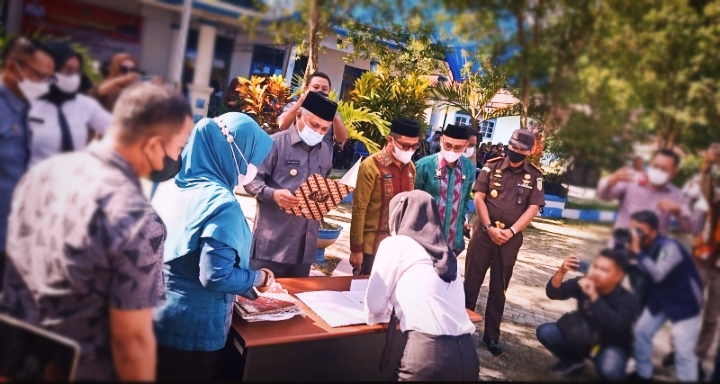 SK PPPK khusus tenaga pendidik diserahkan langsung Bupati Konawe Kery Saiful Konggoasa di halaman Kantor Dinas Pendidikan dan Kebudayaan Konawe, Kamis 07/04/2022.