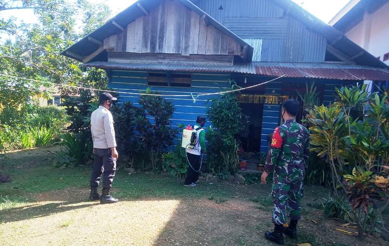 Cegah Penularan COVID-19, Polisi dan TNI di Kolaka Semprot Diinsfektan Rumah Warga