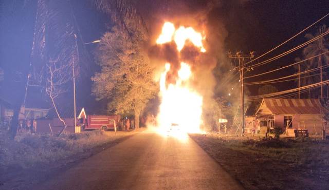 Belum diketahui penyebab kebakaran mobil itu, namun informasi yang diterima Triaspolitika.id, mobil tersebut muatan Bahan Bakar Minyak (BBM) jenis solar.