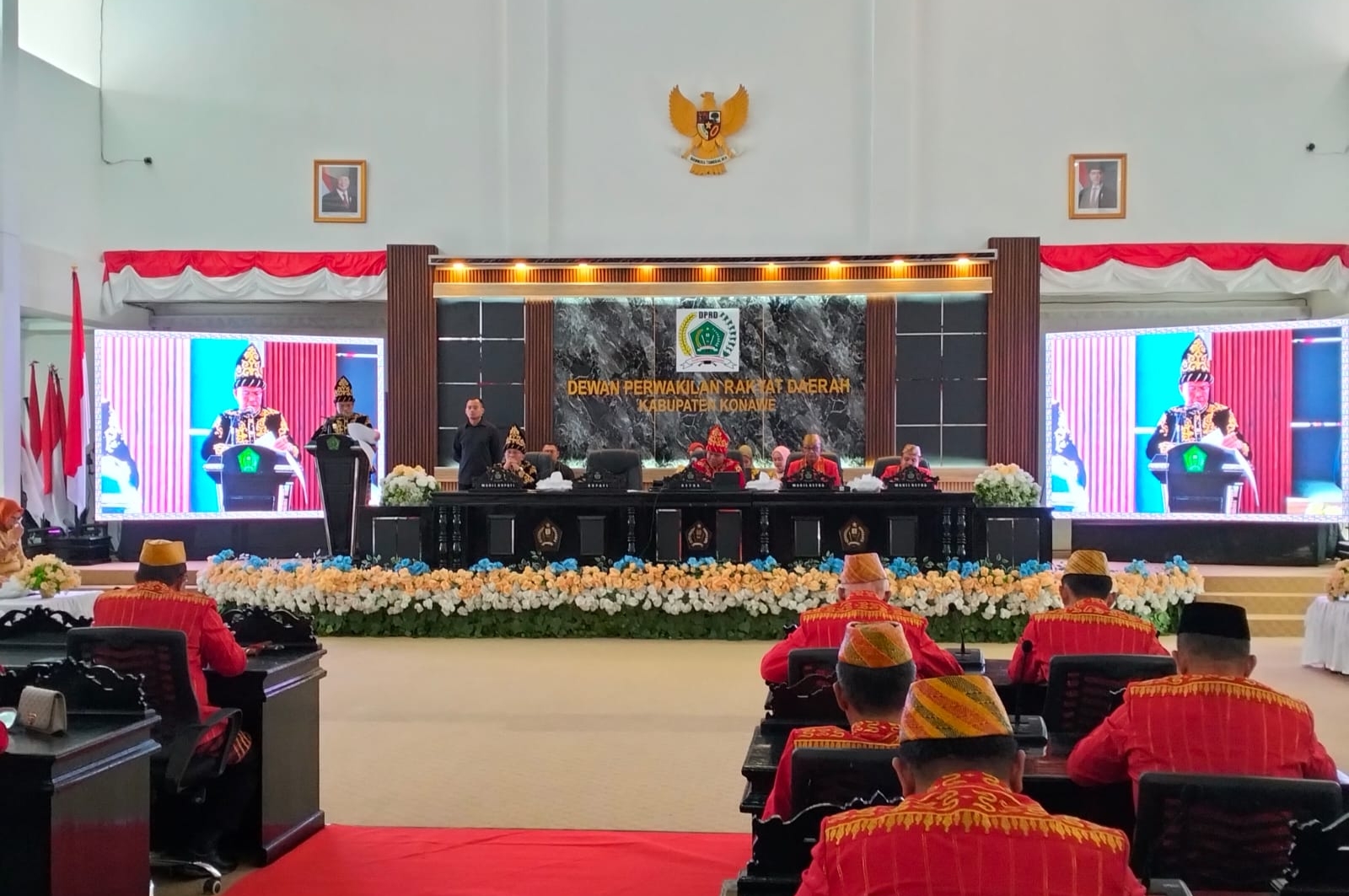 Rapat paripurna dipimpin Ketua DPRD Konawe, I Made Asmaya, didampingi Wakil Ketua I, Nuryadin Tombili, Wakil Ketua II Nasrullah Faizal serta Bupati Konawe, Yusran Akbar dan Wakil Bupati Syamsul Ibrahim.