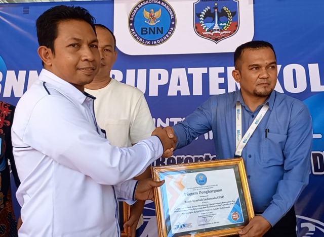 Piagam penghargaan juga diberikan kepada Bank Syariah Indonesia (BSI) cabang Kolaka. BSI diberi piagam penghargaan sebagai perbankan penggerak P4GN.