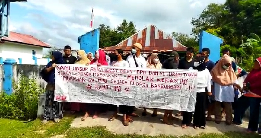 “Kami dan perangkat desa, BPD dan seluruh tokoh masyarakat menolak keras Munawar selaku PJ Kades Bangun Sari,” jelasnya.