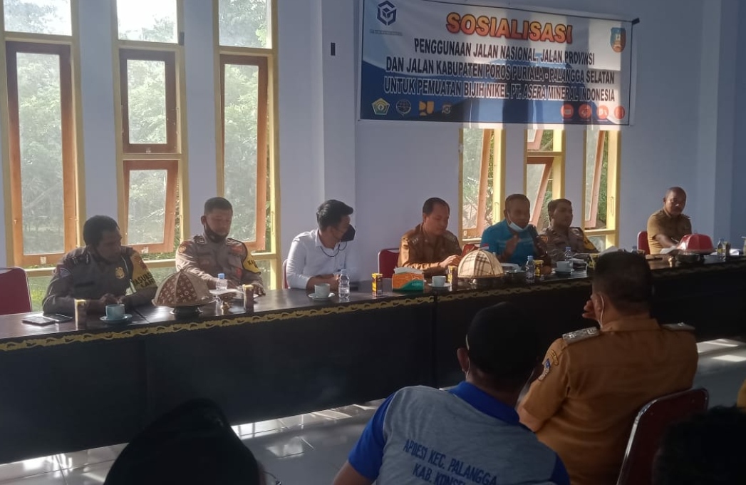 Untuk memuluskan tekat perusahaan dalam pengelolaan dan pengankutan Ore nikel, PT Asmindo dihadapan masyarakat Kecamatan Palangga dan Palangga Selatan menyampaikan terkait dengan penggunaan jalan umum sebagai akses hauling mengangkut Ore nikel dari Desa Sonai Kecamatan Puriala menju Jembatan Titian (Jeti) di Desa Lalowua Kecamatan Palangga Selatan.