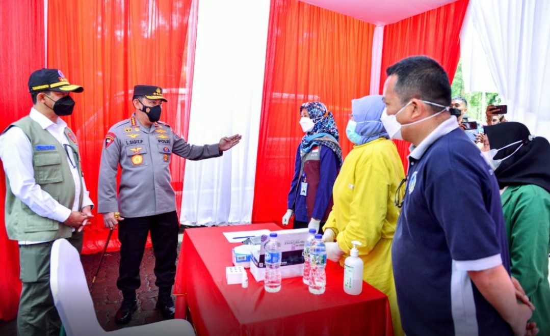 JAWA BARAT, TRIASPOLITIKA.ID – Menteri Koordinator Bidang Pembangunan Manusia dan Kebudayaan (PMK) Muhadjir Effendy, Menteri Kesehatan Budi Gunadi Sadikin, Menteri Perhubungan Budi Karya Sumadi, Kapolri Jenderal Listyo Sigit Prabowo, Kepala BNPB Letjen TNI Suharyanto dan Kasum TNI Letjen Eko Margiyono, memantau kegiatan akselerasi percepatan vaksinasi yang diadakan di seluruh Provinsi di Indonesia.