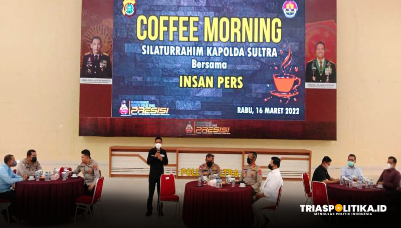 KENDARI, TRIASPOLITIKA.ID – Polda Sultra menggelar Coffee Morning bersama sejumlah insan Pers yang ada di Kota Kendari, Sulawesi Tenggara.