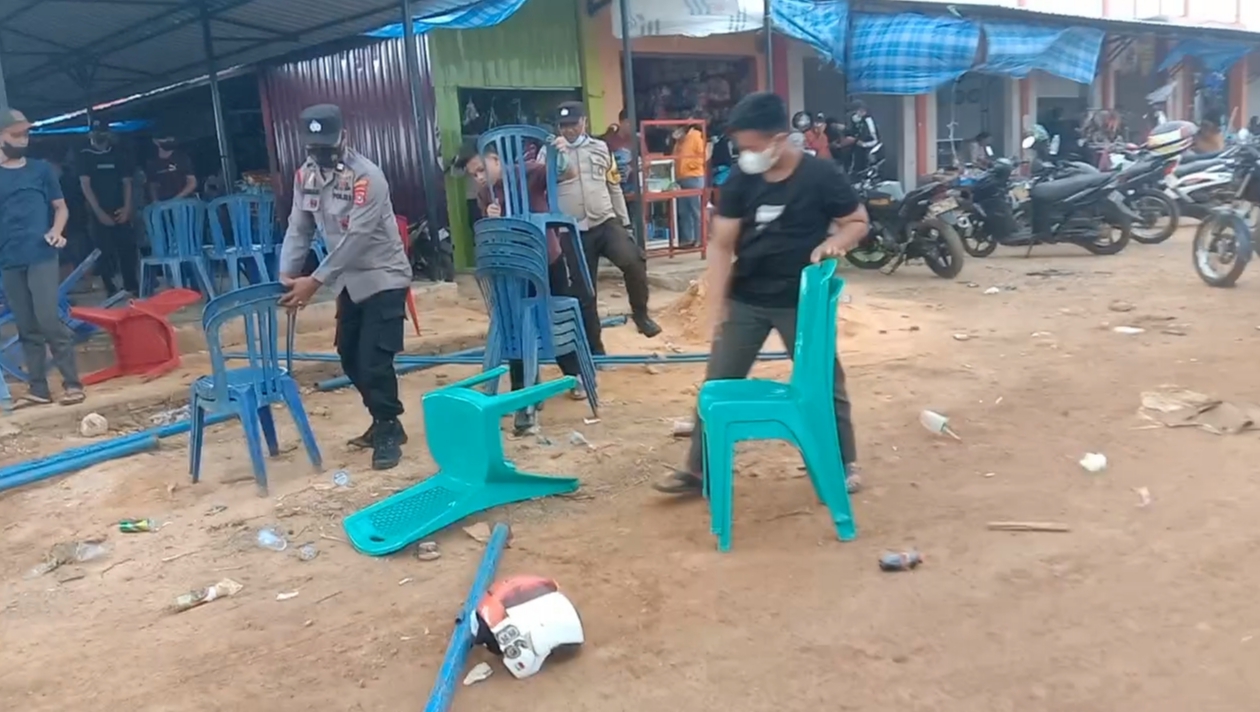 Tenda yang disiapkan untuk masyarakat rubuh, akibat angin kencang yang disertai hujan.