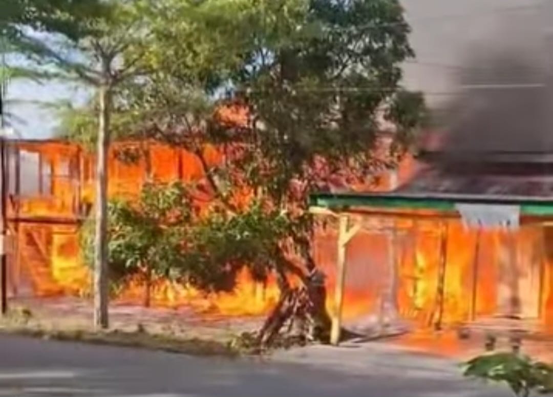 Rumah kayu dua lantai milik almarhum Daeng Maragau serta rumah milik Misba ludes dilalap api sebelum berhasil dipadamkan petugas pemadam kebakaran.