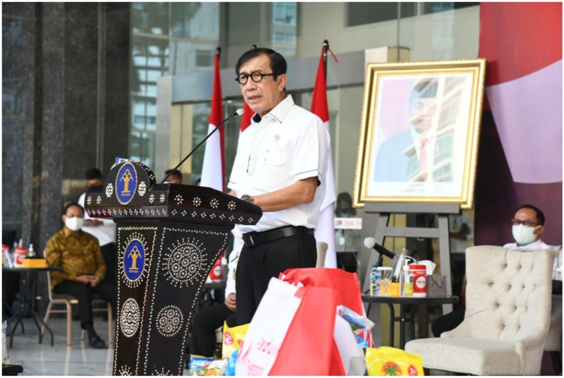 “Kegiatan kita pada hari ini adalah bagian dari kepedulian kepada masyarakat dan saudara kita sesama pegawai yang terpapar Covid-19. Ini merupakan bentuk kepedulian, jiwa sosial, rasa welas asih serta semangat untuk berbagi,” kata Yasonna di lapangan upacara Kemenkumham.