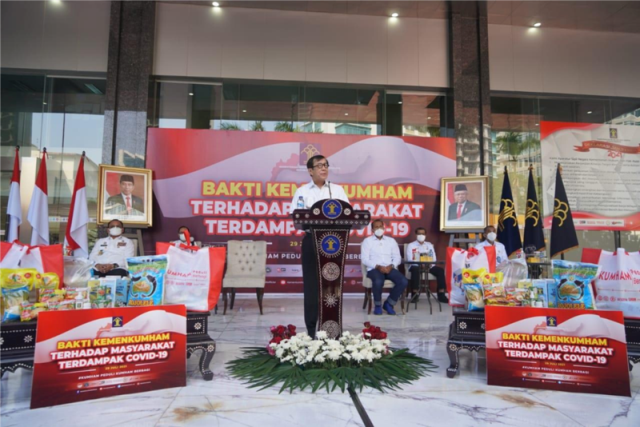 Pemerintah, dalam hal ini Kementerian Hukum dan Hak Asasi Manusia (Kemenkumham) berupaya membantu masyarakat dengan menyalurkan lebih dari 46 ribu paket secara nasional, serentak kepada masyarakat di seluruh Indonesia, agar dapat bertahan hidup di tengah pandemi yang belum menunjukkan tanda-tanda usai.