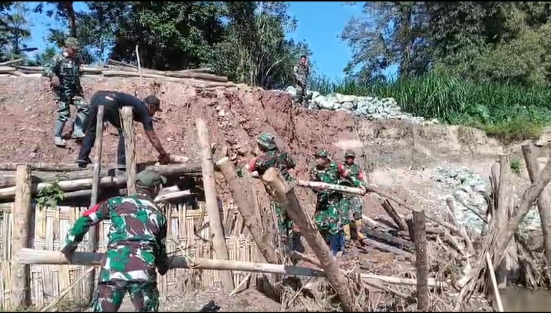 Kodim Kolaka Bergerak Cepat Perbaiki Tanggul Jebol di Kolaka Timur