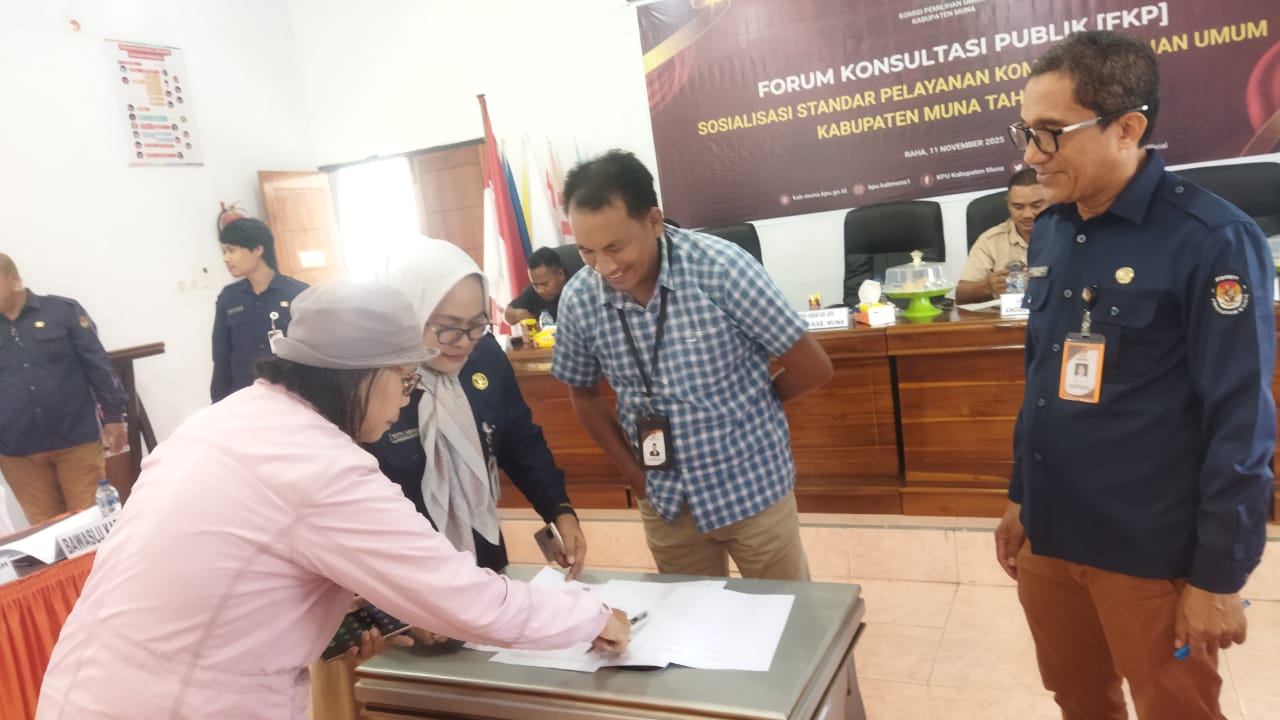 MUNA, TRIASPOLITIKA.ID – Komisi Pemilihan Umum (KPU) Kabupaten Muna, Sulawesi Tenggara, terus berupaya meningkatkan transparansi dan kualitas layanan informasi publik melalui kegiatan Forum Konsultasi Publik (FKP) yang digelar dalam bentuk Focus Group Discussion (FGD), Selasa (11/11/2025).