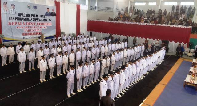 MUNA, TRIASPOLITIKA.ID – Bupati Muna LM Rusman Emba resmi melantik 123 kepala desa terpilih hasil Pilkades serentak tahun 2022, di Sarana Olahraga Laode Pandu Kota Raha, pada Kamis, (29/12/2022).