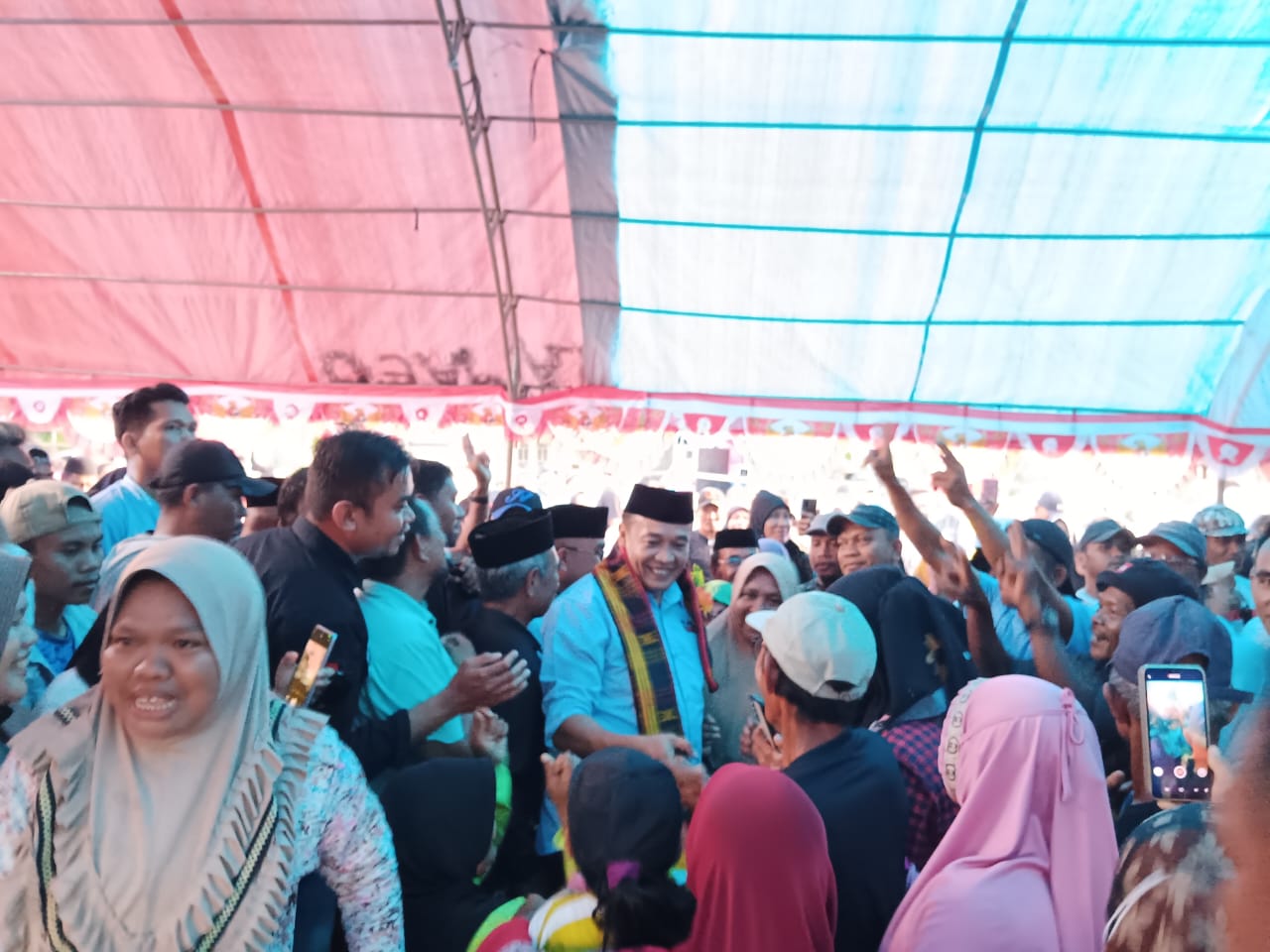 Setibanya di lokasi kampanye, antusias massa kembali terlihat. Saking padatnya, masyarakat yang hadir bahkan untuk masuk ke bangsal, Paslon bernomor urut 2 ini butuh waktu yang cukup lama.