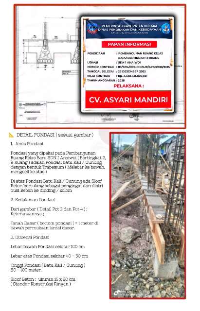 Awal September 2025, LIRA Kolaka menerima laporan masyarakat terkait proyek pembangunan ruang baru SDN 1 Anaiwoi yang diduga menggunakan material di bawah standar dan tidak sesuai spesifikasi teknis.