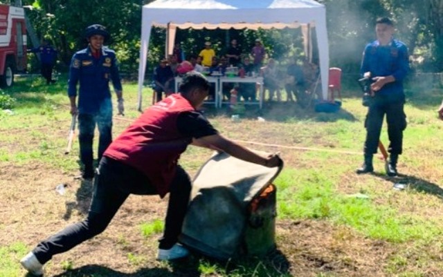 Mahasiswa KKN USN Kolaka dan Damkar Gelar Simulasi Kebakaran di Kolut