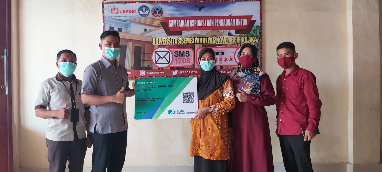 KOLAKA, TP – Guna melindungi para pegawainya dari hal-hal yang tidak diinginkan, Universitas Sembilanbelas November (USN) Kolaka, Sulawesi Tenggara (Sultra), mendaftarkan seluruh pegawainya dalam program perlindungan BPJS Ketenagakerjaan atau BP Jamsostek mulai sejak Desember 2020 lalu.