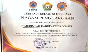 Pemkab Konawe di Ganjar Penghargaan Tangguh Bencana Oleh Gubernur Sultra