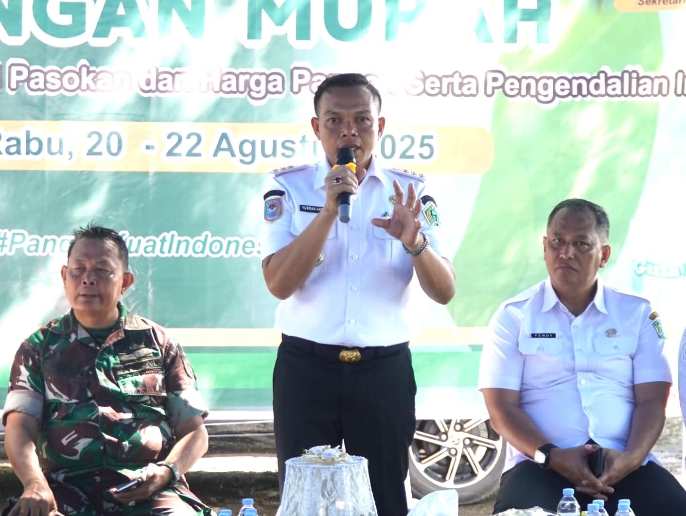 Dalam sambutannya, Bupati menyampaikan ucapan syukur serta penghormatan kepada seluruh tamu undangan yang hadir. Ia menegaskan bahwa kegiatan pasar murah ini bertujuan untuk menjaga stabilitas harga pangan pokok yang dalam beberapa waktu terakhir mengalami kenaikan, seperti beras, tomat, bawang, dan minyak goreng.