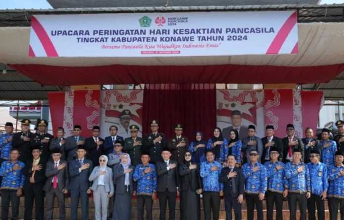 TRIASPOLITIKA.ID : KONAWE – Pemerintah Kabupaten Konawe menggelar Upacara Peringatan Hari Kesaktian Pancasila di halaman Kantor Bupati Konawe pada Selasa, 1 Oktober 2024.