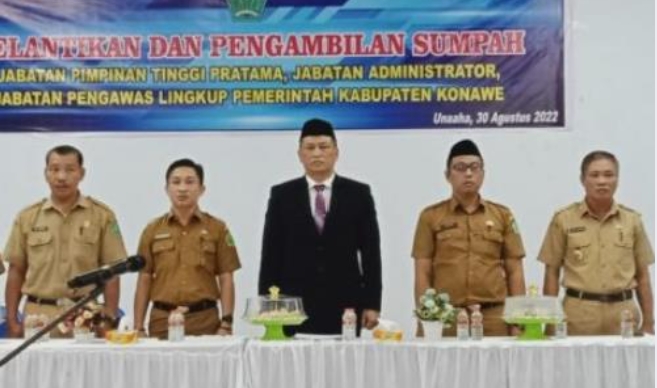 Pelantikan tersebut berdasarkan surat Keputusan Bupati Konawe Nomor 213 dan 313 Tanggal 29 Agustus 2022 tentang Pengangkatan JPT, Administrator dan Pengawas lingkup Pemerintah Kabupaten Konawe.
