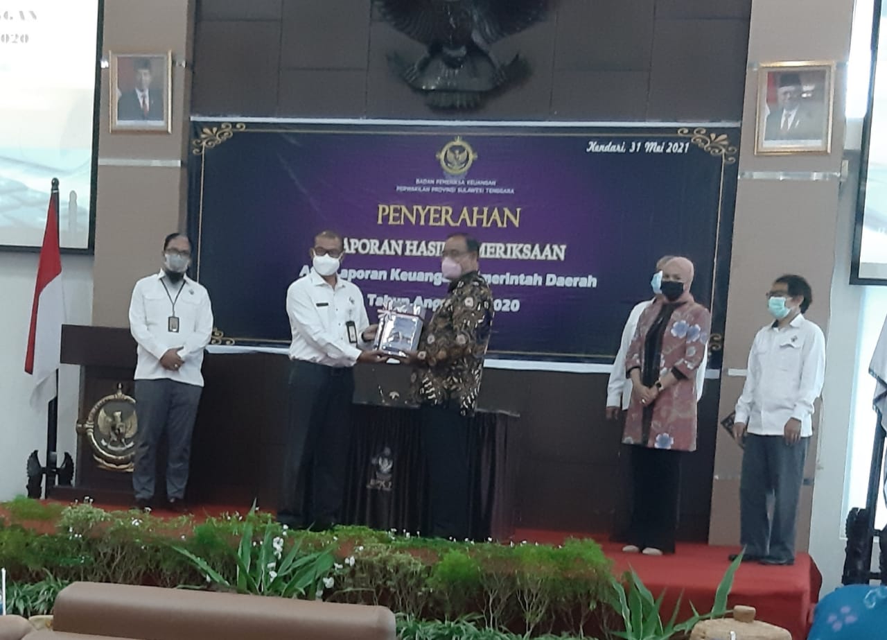 Penghargaan Opini tersebut resmi diterima Bupati Mubar, Achmad Lamani di Kendari (31/5/2021) dari ketua BPK perwakilan Sultra, Andi Sonny.