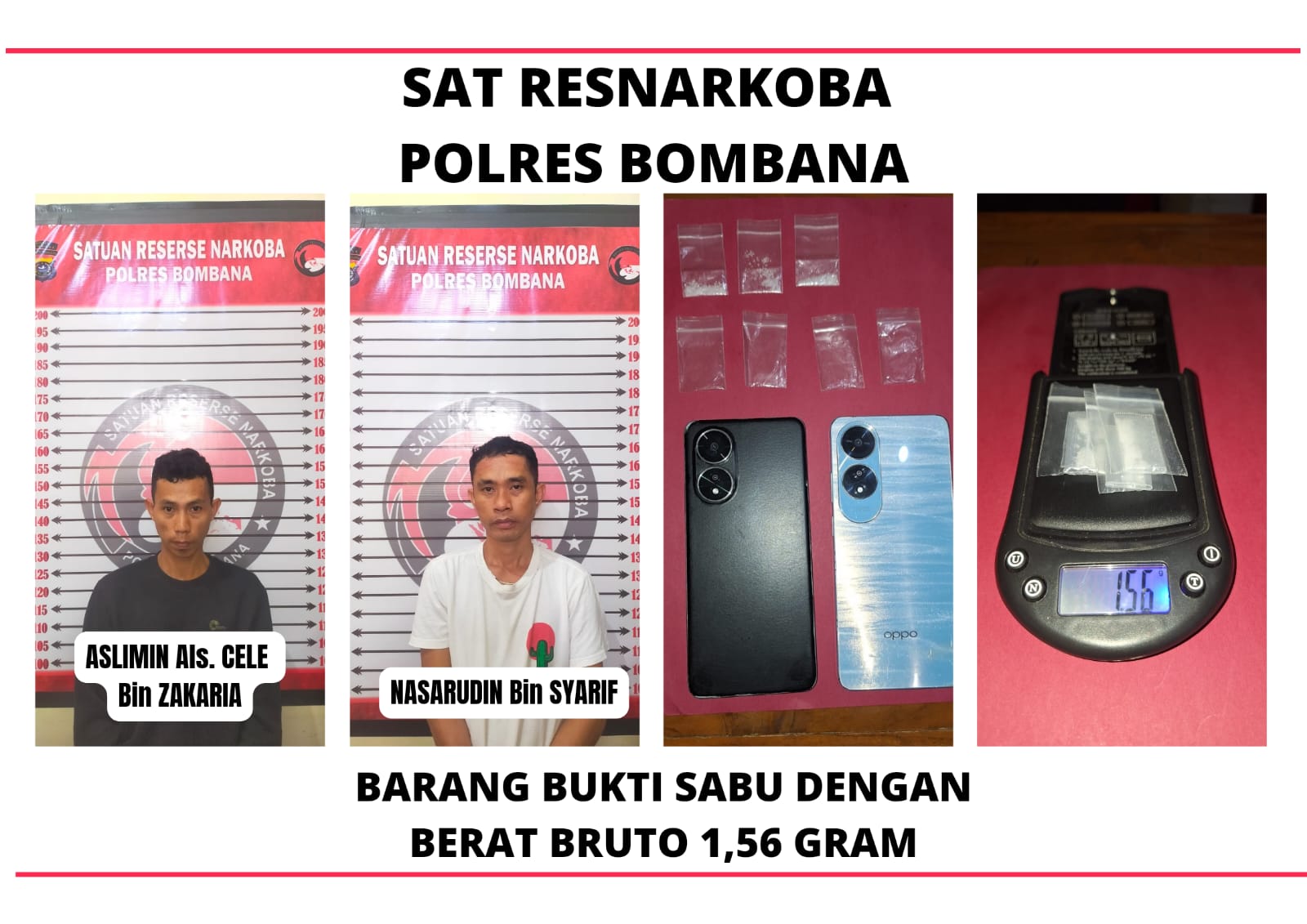 Penangkapan dilakukan sekitar pukul 05.00 Wita di sebuah rumah milik Aslimin alias Cele. Polisi menyebut penindakan ini merupakan tindak lanjut dari laporan masyarakat terkait dugaan aktivitas transaksi narkotika di lokasi tersebut.