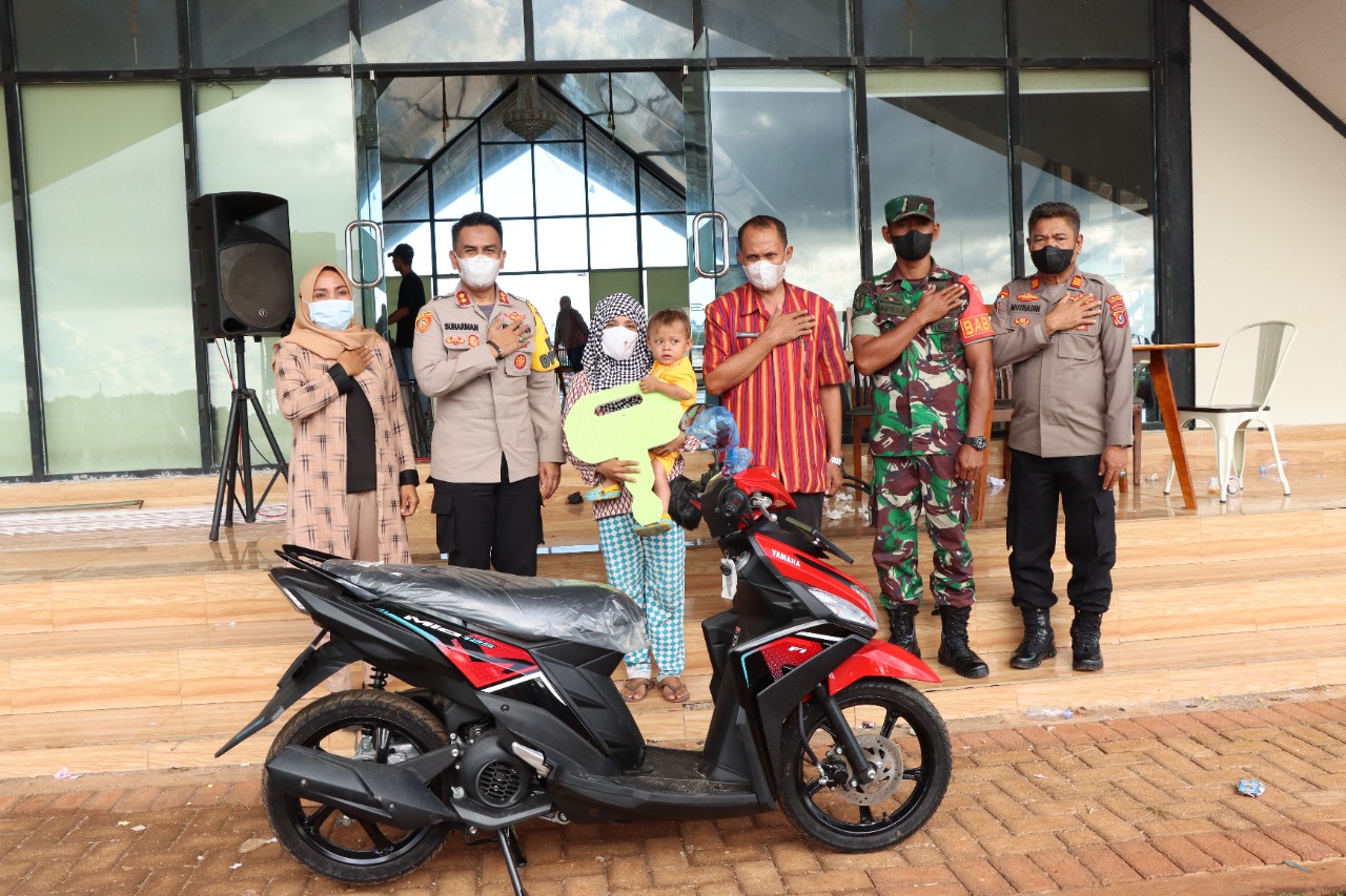 Kapolres Wakatobi AKBP Suharman Sanusi mengatakan “Dalam giat tersebut saya menyerahkan langsung hadiah utama 1 unit motor metik Mio 125 kepada pemenang undian atas nama Wa Ode Rasnawati. Asisten I, Kabag OPS, Kasat Binmas, dan Kasat Samapta, danramil serta Kasat Intelkam turut menyerahkan hadiah kepada pemenang undian lainnya,” ujarnya.