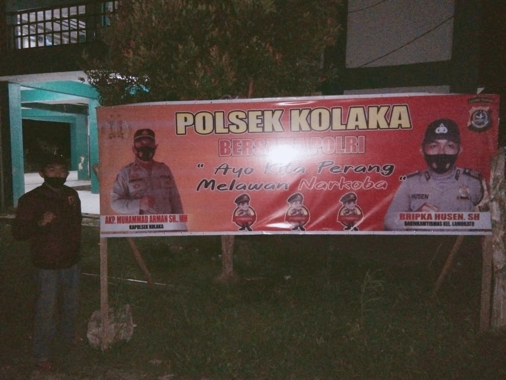 Baliho yang bertuliskan Polsek Kolaka bersama Polri, Ayo Kita Perangi dan Lawan Narkoba, itu kata Arman dipasang disejumlah titik di wilayah hukum Polres Kolaka.