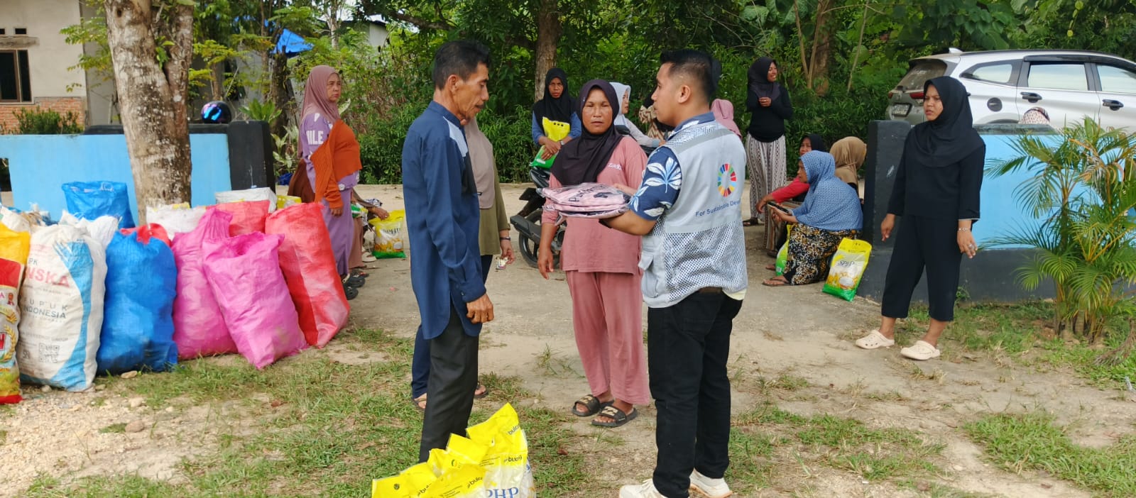 Dalam kegiatan tersebut, puluhan paket sembako dibagikan kepada warga yang menukarkan sampah plastik. Setiap paket berisi beras seberat 5 kilogram.