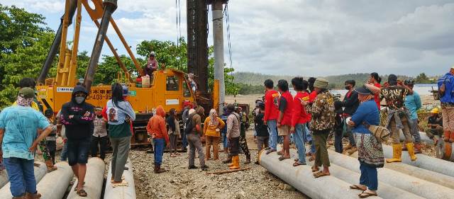 Dugaan penyerobotan itu terjadi saat perusahaan melakukan aktivitas pemancangan tiang beton di area yang diklaim sebagai milik warga.