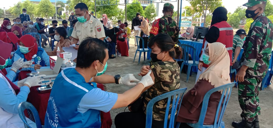 “Pagi Hingga siang hari ini sudah 476 orang yang di vaksin dan masih bertambah terus, sebab kita lihat sendiri yang antri, selain yang sudah mendaftar masih ada masyarakat yang akan mendatangi tempat, ini,” kata kapten Inf Sudarto.