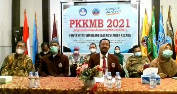 KOLAKA, TP – Rektor Universitas Sembilanbelas November (USN) Kabupaten Kolaka, Dr. Azhari S.STP.,M.Si membuka langsung Kegiatan Pengenalan Kehidupan Kampus Bagi Mahasiswa Baru (PKKMB) yang berlangsung diruangan Rektorat USN Kolaka,Provinsi Sulawesi Tenggara, Senin (13/9/2021).