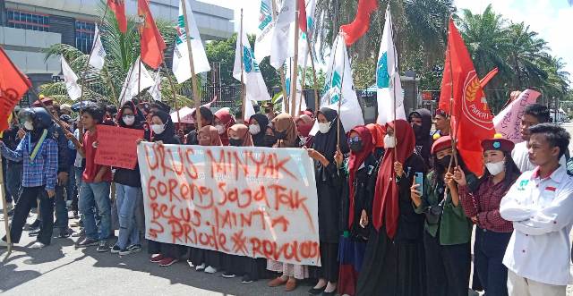 “Kami menolak Jokowi tiga periode. Aturan harus ditegakan. Kami juga meminta pemerintah memperhatikan masyarakat. Minyak goreng langkah, BBM naik. Warga menjerit pak,” ujar salah satu orator masa aksi.