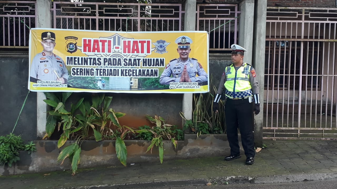Kapolres Baubau AKBP Erwin Pratomo, SIK melalui Kasat Lantas Iptu jajat Sudrajat, SE, pemasangan Spanduk rawan laka lantas dan himbauan tertib berlalu lintas ini, sebagai upaya Sat Lantas Polres Baubau menekan angka kecelakaan lalu lintas di jalan raya dalam wilayah hukum Polres Baubau, terlebih saat ini masih sering turun hujan, jalan licin, banyak pohon tumbang, sehingga tidak terjadi fatalitas bagi pengendara maupun pengemudi.
