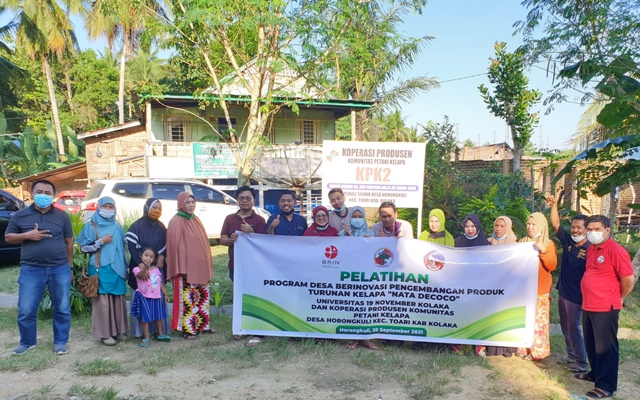 Kegiatan tersebut di fasilitasi oleh Badan Riset dan Inovasi Nasional (BRIN) dengan mitra Koperasi Produsen Komunitas Petani Kelapa Kolaka (KPK2) di desa Horongkuli Kecamatan Toari, Kabupaten Kolaka.
