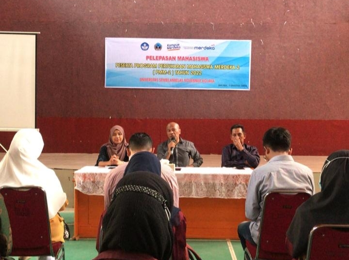 KOLAKA, TRIASPOLITIKA.ID – Universitas Sembilanbelas November (USN) Kolaka menggelar sosialisasi sekaligus pelepasan untuk mahasiswa USN yang terpilih dalam program Pertukaran Mahasiswa Merdeka (PMM) Tahun 2022. Pelepasan untuk 12 mahasiswa ini dilaksanakan di Aula Auditorium USN Kolaka. Sulawesi Tenggara,