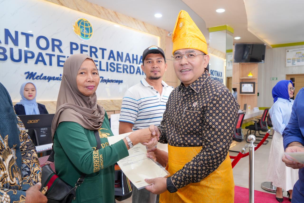 Kunjungan kerja dilanjutkan ke Kantah Kabupaten Deli Serdang. Dalam kesempatan tersebut, Wamen Ossy menyerahkan sertifikat tanah kepada enam warga sebagai bentuk nyata kehadiran negara dalam memberikan kepastian hukum atas kepemilikan tanah.