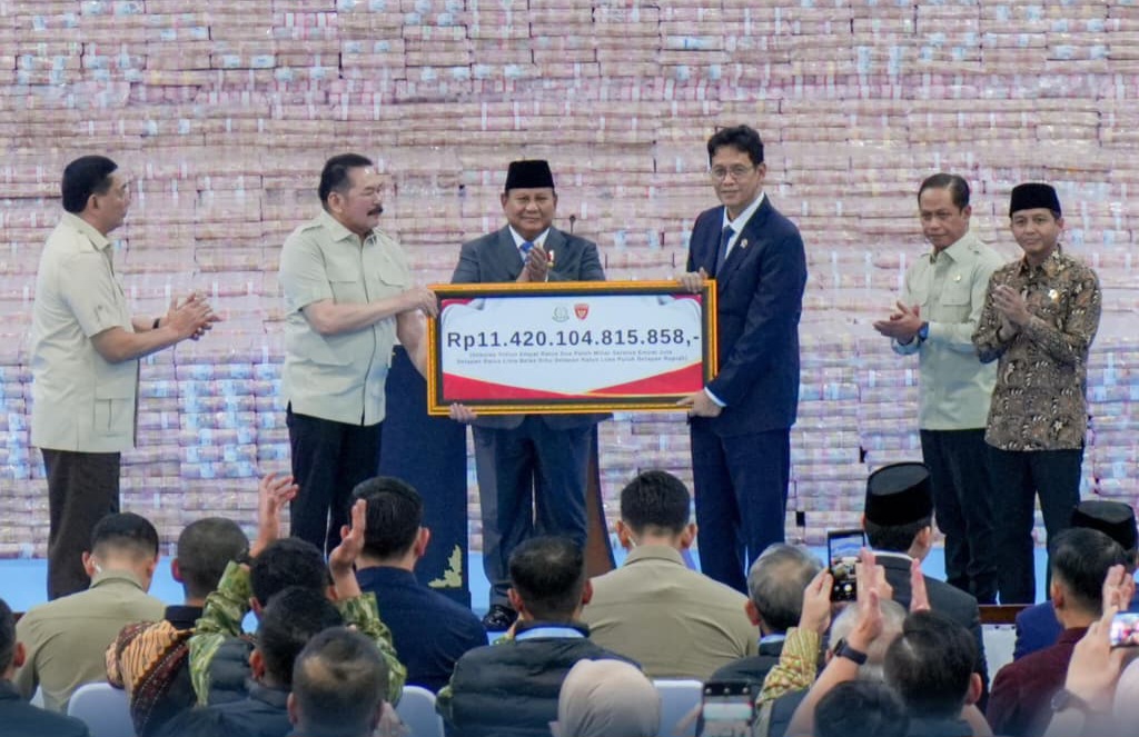 “Mewakili Bapak Menteri Nusron, saya hadiri acara penyerahan denda administratif Satgas PKH senilai sekitar Rp11,42 triliun. Bersyukur dapat wujudkan harapan Bapak Presiden dan masyarakat, agar kekayaan negara serta sumber daya alam dimanfaatkan sebesar-besarnya untuk rakyat,” ujar Wamen Ossy usai acara.